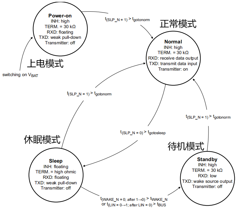 TJA1021工作模式轉(zhuǎn)換圖