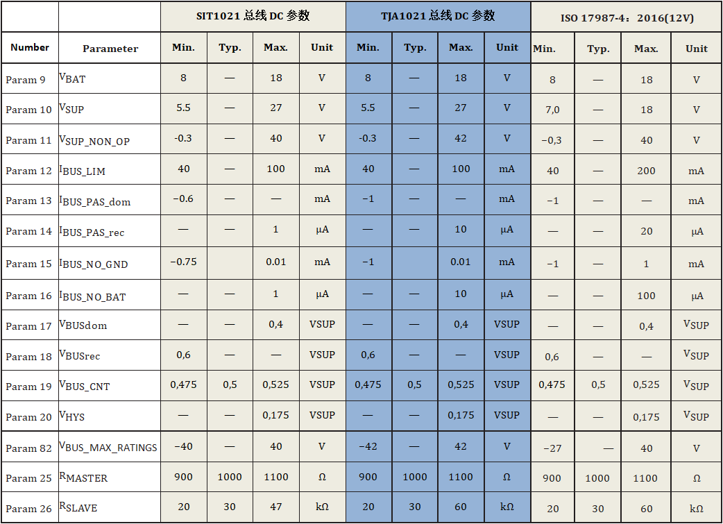 12V LIN系統(tǒng)DC參數(shù)