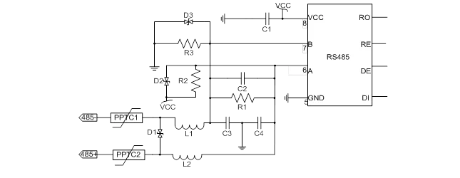 RS485通訊接口芯片廣泛應用于各種智能儀表上,采用RS485接口的智能儀表不僅可以實現(xiàn)點對點的通信方式,還可以實現(xiàn)聯(lián)網(wǎng)功能,RS485為遠程抄表提供了最可靠的抄表方式。RS485接口芯片的應用非常廣泛,應用環(huán)境各有不同,而智能儀表、工業(yè)控制等現(xiàn)場環(huán)境時常非常惡劣,RS485通訊端口需要做好靜電防護、雷擊浪涌防護、以及380V市電接入防護等,以避免智能儀表、工控主機的損壞。本文介紹幾種典型的RS485端口防護電路。